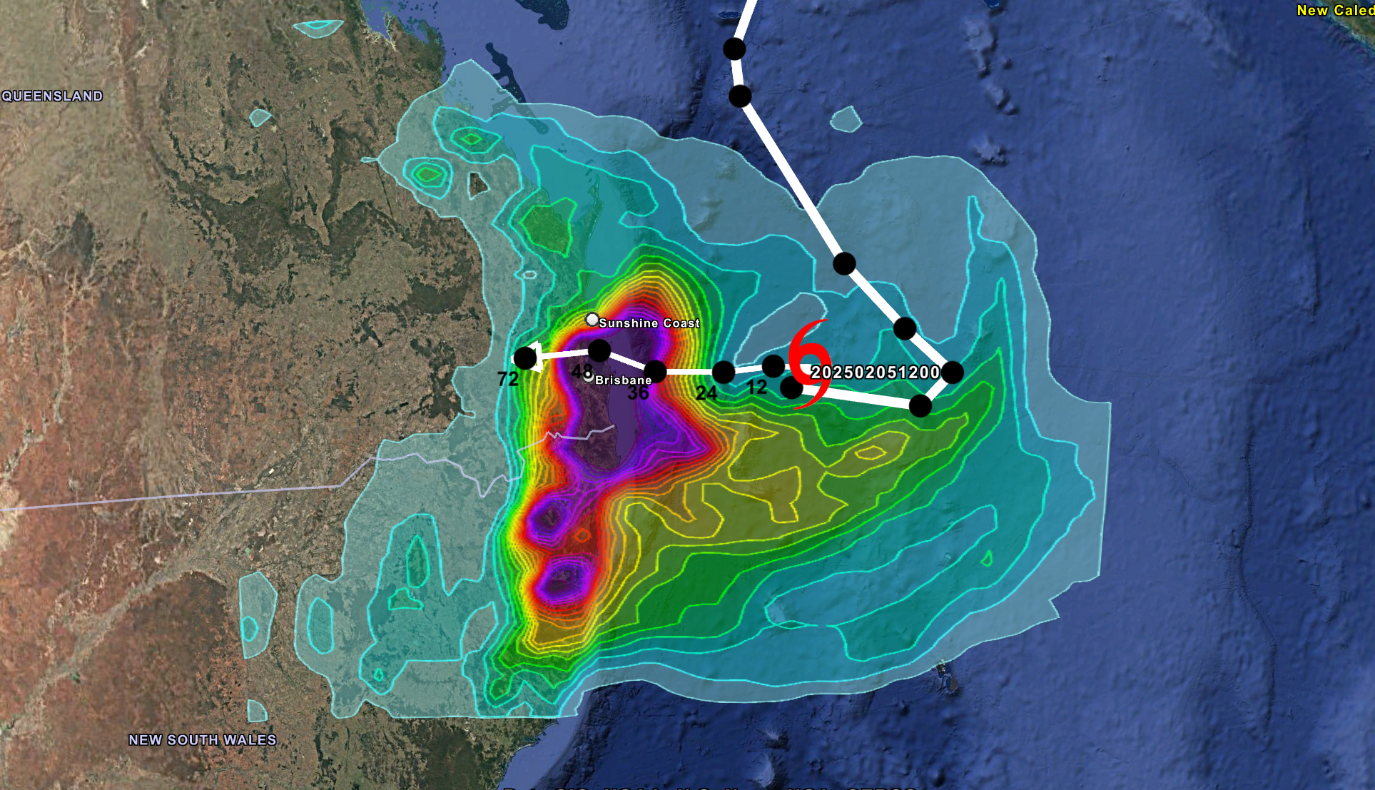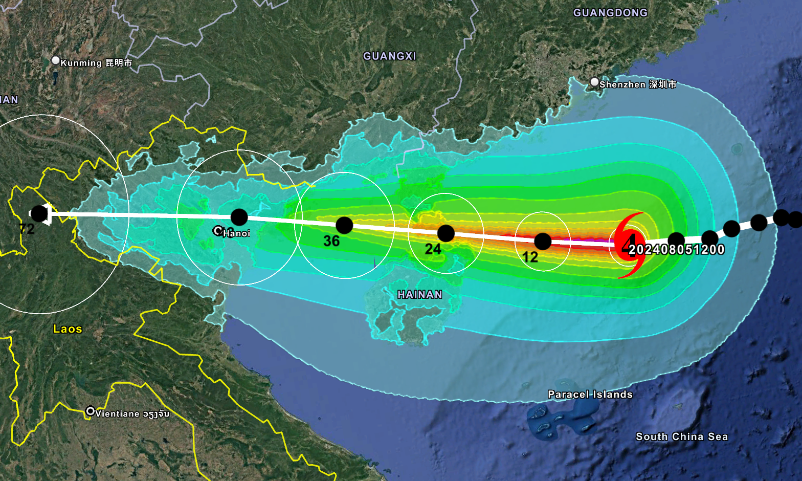 Rainfall associated with tropical cyclones can often have more devastating consequences compared to the damage from high winds. Our rainfall footprints show the past and forecast storm track from regional advisories, overlayed with rainfall accumulations over 12, 24, 36, 48, 72, 96, and 120-hour intervals so users can highlight areas at risk of floods, landslides, or mudslides. Data updates every 3-6 hours. |